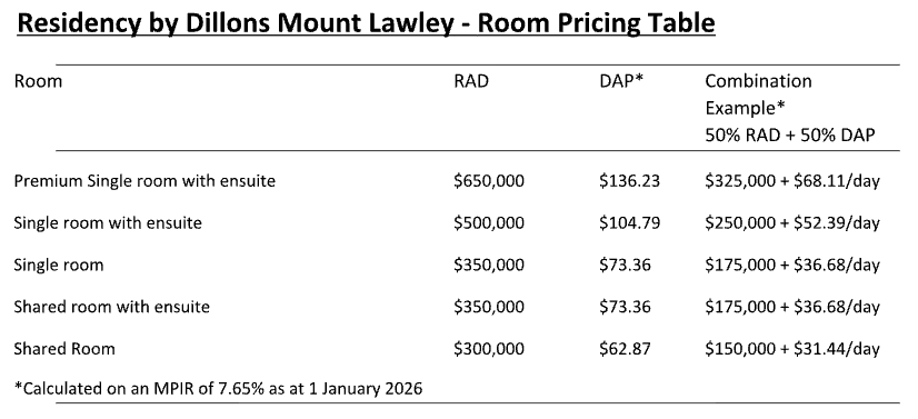 Residency by Dillons Fremantle – ROOM PRICING TABLE