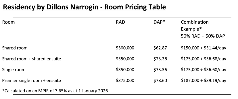 Daily Accommodation Payment (DAP) – a non-refundable daily payment