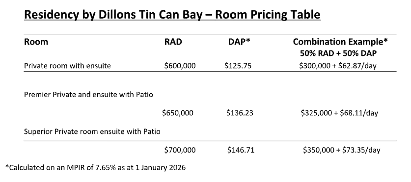 Refundable Accommodation Deposit (RAD) – a lump sum that is refunded when you leave care (less any applicable deductions)