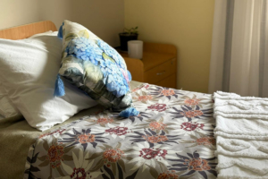Your room will be fitted with essential furniture, such as appropriate bed and bedding, bedside table, wardrobe/drawers, armchairs and toiletries. We encourage you to personalise your room with small items like photos or keepsakes. You may wish to bring some small pieces of furniture such as a favourite chair.